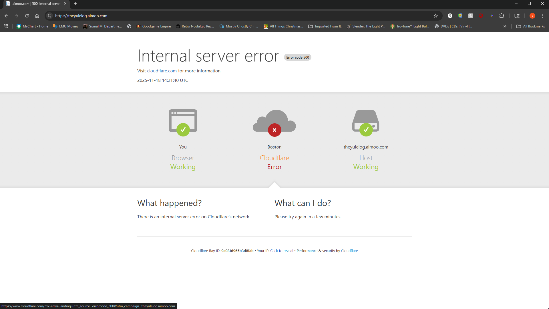 Re:Get on the web site Date Posted:11/19/2025 01:56:11Copy HTML Yesterday when I tried to get in, I received the following webpage. So I am guessing it is intermittent. Usually I receive a 404 error Christmas Isn't Just A Day In December, It's A Way Of Life.